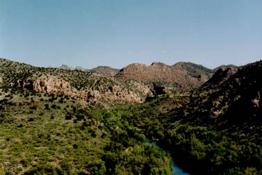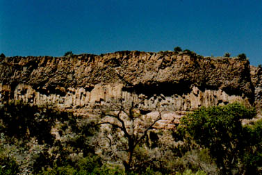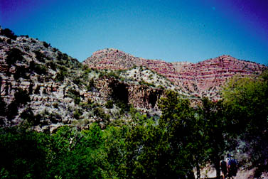 Du fond de la vallée on est entouré de strates de sédiments et de laves.