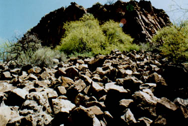 Débris de colonnades qui s'effondrent du sommet de la coulée.