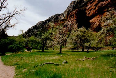 Verger en fleur à l'entré du canyon.