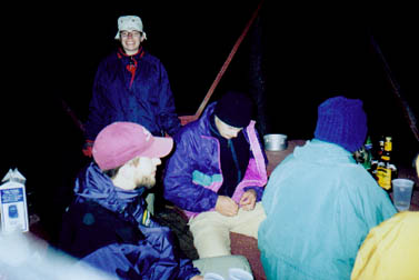 Ce soir là il a neigé au Woody Mountain campground, même Patrick est en pantalons.